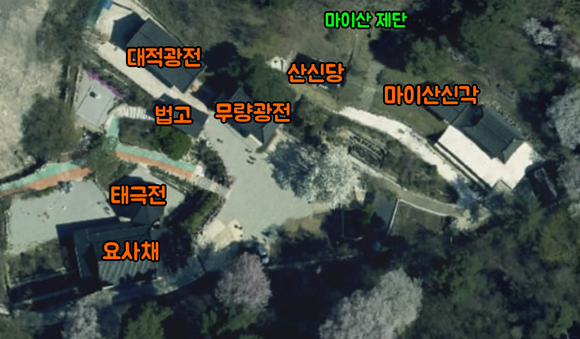 | 마이산신제단 | 무량광전 뒤쪽의 산신각 오른쪽에 위치한 제사 유적으로, 매년 10월 11일 진안군이 주관하여 "진안군민의 날" 행사 일환으로 국태민안(國泰民安)과 시화연풍(時和年豊), 그리고 군민의 평안함을 기원하는 산신제를 지내고 있습니다. |
