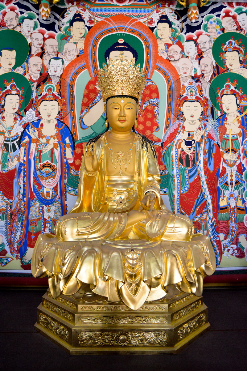 앞5칸·옆3칸 다포계 팔작지붕; 관세음보살이 상주하는 보타락가산에서 유래한 전각으로, 1993년 완공된 낙산사의 대표적인 관음 성지 건축물이자 가장 큰 불전이며, 원통보전· 해수관음상과 더불어 낙산사가 한국의 대표적 관음성지임을 상징하는 불전입니다. 내부에는 천수관음(千手觀音), 성관음(聖觀音), 십일면관음(十一面觀音), 여의륜관음(如意輪觀音), 마두관음(馬頭觀音), 준제관음(准提觀音), 불공견색관음(不空羂索觀音)등 7관음상, 32응신(應身), 1500관음상 등 다양햔 관음상이 모셔져 있고, 외부 벽화에는 의상대사의 일대기가 그려져 있습니다. 관음상의 재질은 목조로, 백두산의 홍송을 사용했으며, 1500 모든 관음상의 천수천안과 32응신상을 곱한 수인 5천만은 한국 5천만 인구를 뜻하여 한국민의 구원과 해탈을 기원을 의미합니다. 풍수지리상 가장 이상적인 명당인 배산임수(背山臨水 )의 지형 덕에 2005년 화재에도 피해를 입지 않았으며, 보타전 앞엔 큰 연못과, 보타락이 자리하고 있습니다. ♣7관음상을 봉안하던 날 하늘에서 풍악이 울리며, 청학 5마리가 날아올랐고, 거친소리를 토해내던 동해마저 조용해졌으며, 무지개와 같은 서기광명이 온 하늘을 채웠다고 합니다. 또한 그날 밤 신도회장의 꿈에는 동해바다의 해일이 보타전까지 날아올랐다고 합니다. [보타전: 관세음보살이 상주하는 인도 보타락가산(補陀落迦山)에서 유래한 명칭으로, 관세음보살을 주불로 모신 불교 전각. 관음전· 원통전] |