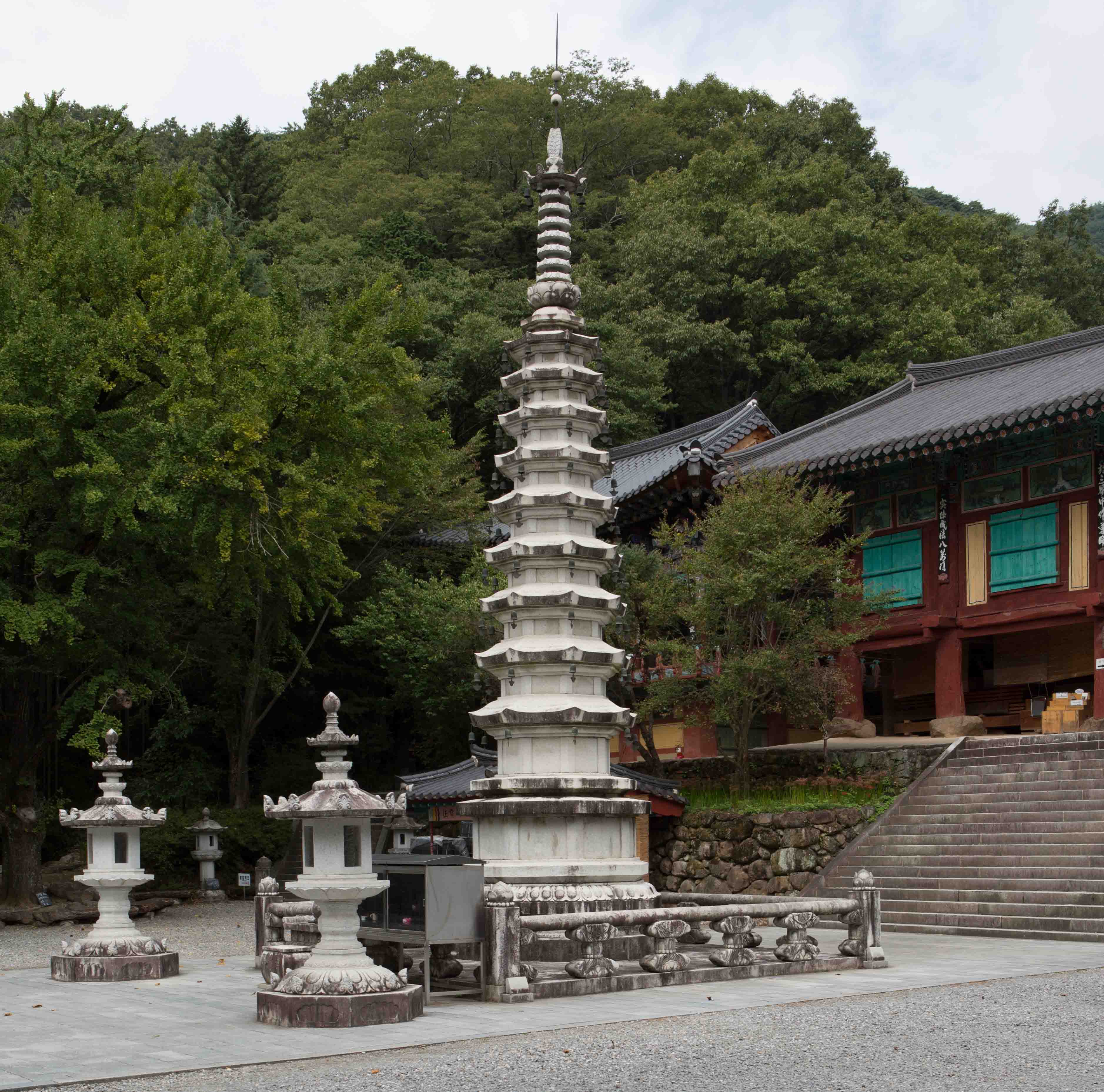 [금강계단: 불교에서 부처님의 진신사리를 모시고 수계 의식을 행하는 곳. 여기서 금강(金剛)은 다이아몬드처럼 견고하고 깨지지 않는 계율을 상징하며, 계단(戒壇)은 수계를 위한 의례 공간을 뜻하는 것으로, 금강계단은 금강과 같이 굳건한 계율을 전수하는 신성한 장소를 의미합니다.]