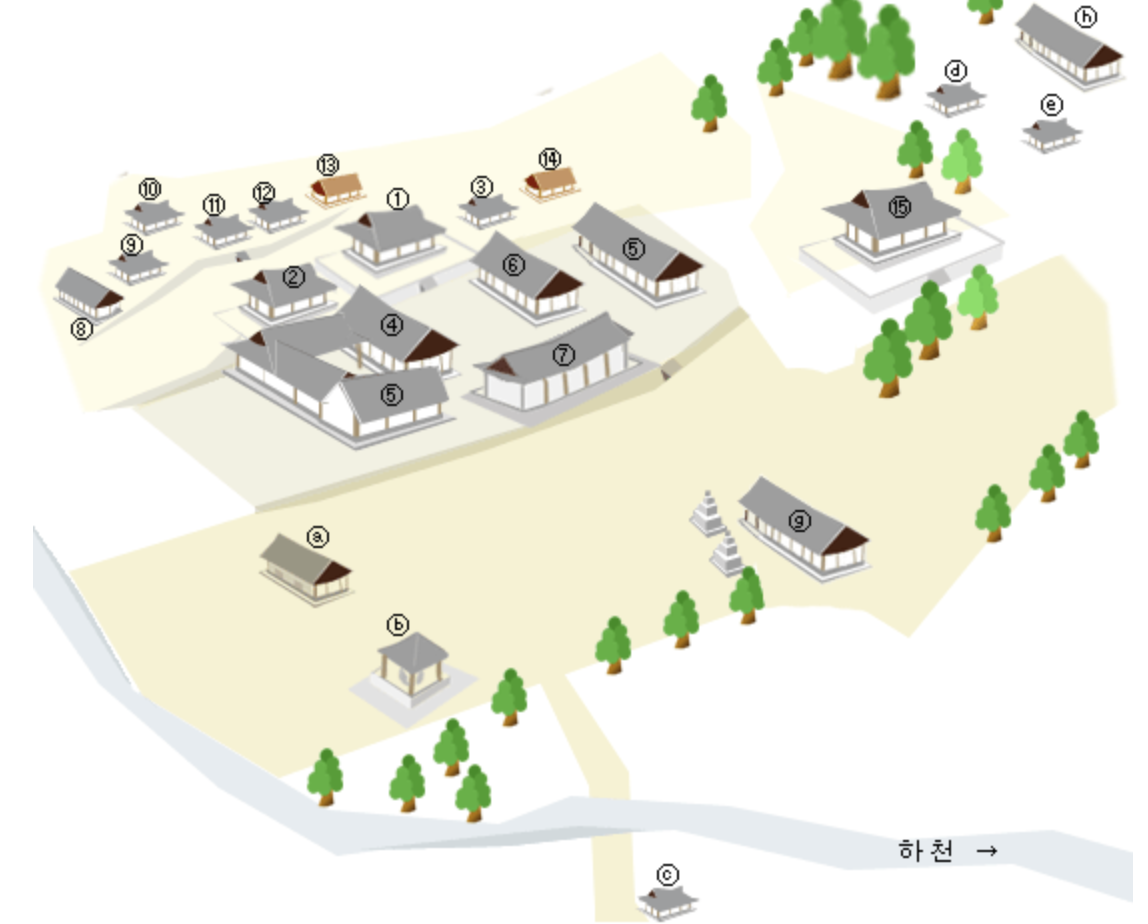 | 8.취향전 | 앞3칸·옆2칸 팔작지붕; 스님들이 지내시는 요사로 보입니다. |