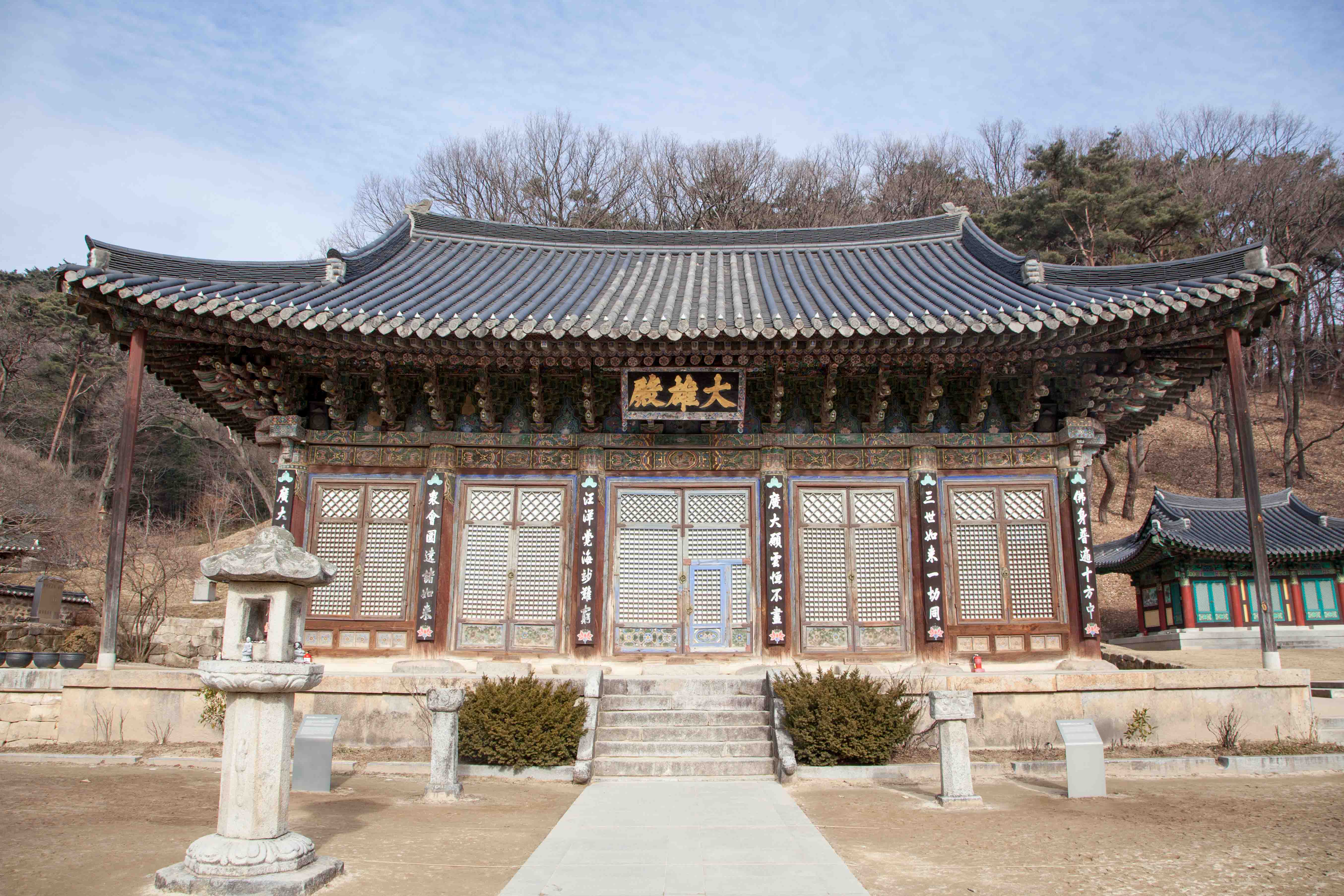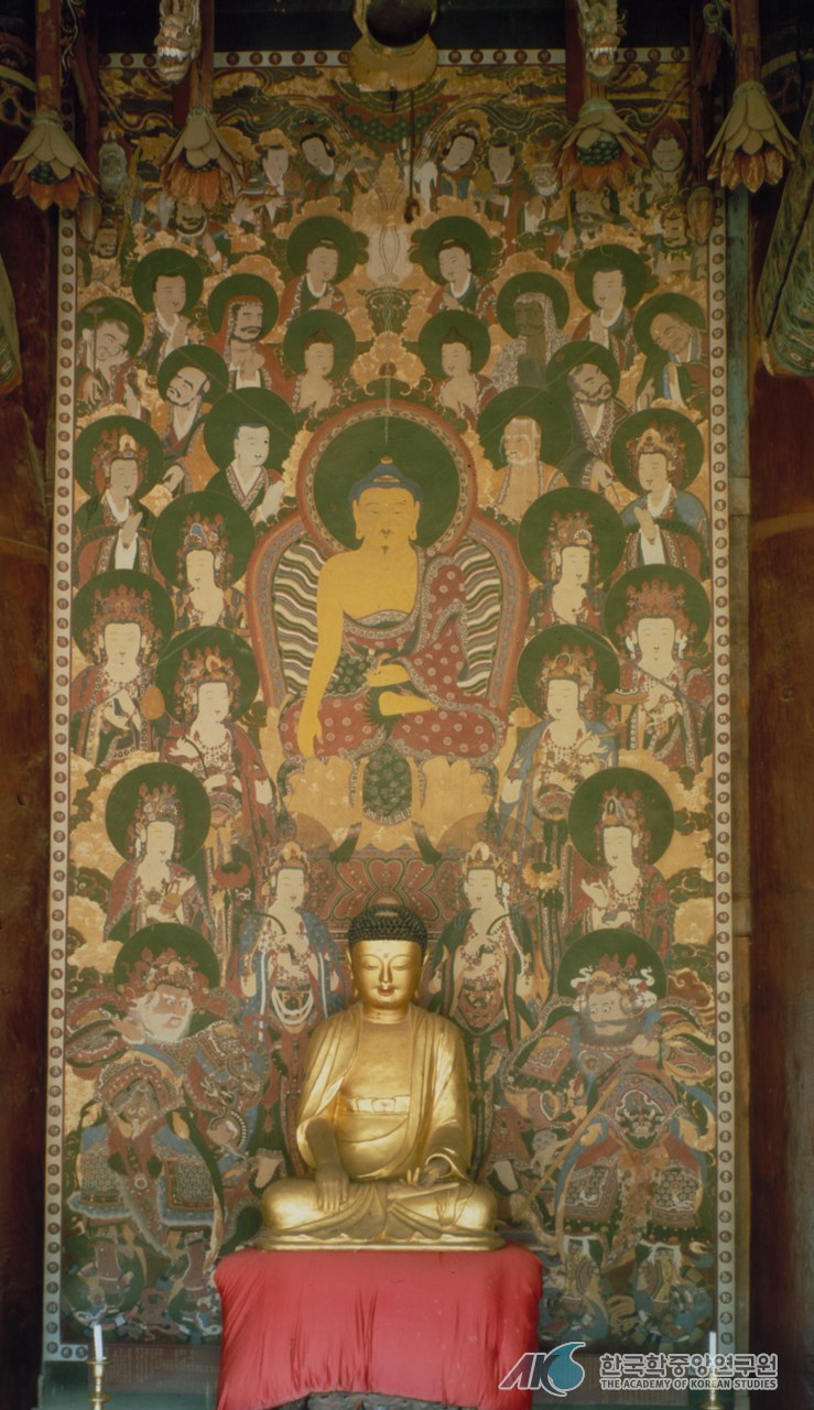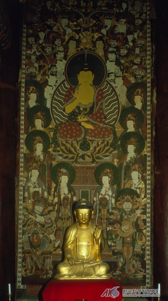 앞3칸·옆2칸 맞배지붕; 나한전이라고도 하는 전각으로, 주존인 석가여래와 좌우협시 미륵보살·제화갈라보살이 삼존불을 이루고 있으며 ,좌우로 석가모니의 제자 16 나한이 모셔져 있습니다. [나한: 석가모니 부처님의 많은 제자들 중 상수제자 16인. 일찍이 말세의 중생에게 복덕을 성취하게 하고 정법으로 인도하겠다는 원을 세운 성자들로, 많은 영험담과 함께 민간에서 신봉되어 나한 신앙을 형성] |