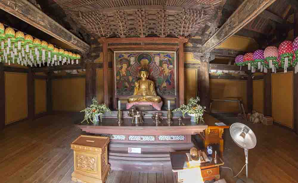 앞3칸·옆2칸 주심포 맞배지붕; 보물449호;  극락전 앞 동쪽에 위치한 조선전기에 중수한 건물로, 한국 전통 건축에서 가장 오래된 양식 중 하나인 주심포이며 익공에 가까운 배치방식을 보이기도 합니다. 여러 건축기법을 이용해 짜임새 있게 구성된 건물이며, 현재 승님이 기거하시는 요사채로 사용되고 있습니다.