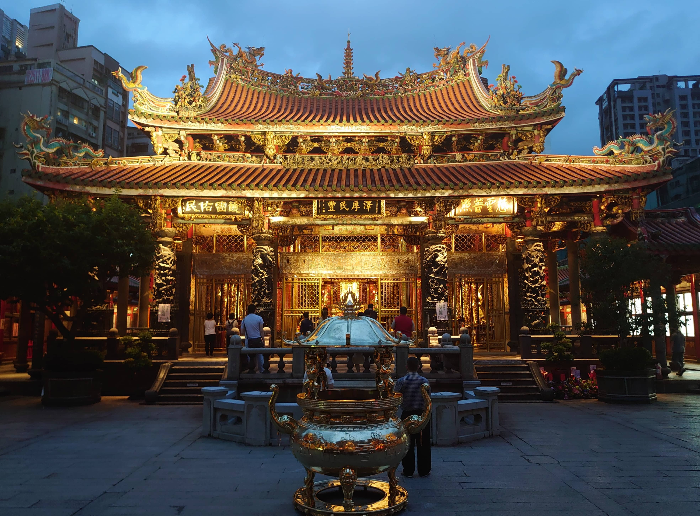 룽산쓰(龍山寺, Lungshan Temple)는 대만 타이베이의 완화제(萬華區)에 위치한 대표적인 불교·도교 사원으로, 1738년 청나라 시기에 건립되어 300년이 넘는 역사를 자랑합니다. 화려한 목조 조각과 다채로운 채색으로 장식된 전각은 전통 중국 사원의 아름다움을 그대로 간직하고 있으며, 사원 안팎으로 자리한 관우, 관음보살, 월하노인 등 다양한 신상을 통해 대만 민간신앙의 풍부함을 엿볼 수 있습니다. 매일 아침·저녁으로 이어지는 향 점화 의식과, 사원 앞 광장에서 펼쳐지는 상인들의 제례 공연은 현지인과 관광객 모두에게 깊은 인상을 남깁니다. 낮보다 밤에 방문하면 조명이 아름답게 비춰 더욱 신비로워요.