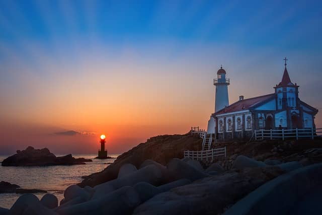 해동용궁사는 고려시대인 1376년에 공민왕의 왕사였던 나옹화상이 창건한 사찰로, 바닷가 절벽 위에 위치한 독특한 입지로 유명합니다. 사찰에서는 바다를 배경으로 한 아름다운 일출을 감상할 수 있으며, 다양한 불교 행사가 열립니다. 해동용궁사는 '소원을 이루어주는 사찰'로 알려져 있어, 매년 많은 이들이 소원을 빌기 위해 방문합니다. 특히, 석가탄신일에는 수많은 연등이 바다를 배경으로 빛나며 장관을 이룹니다.