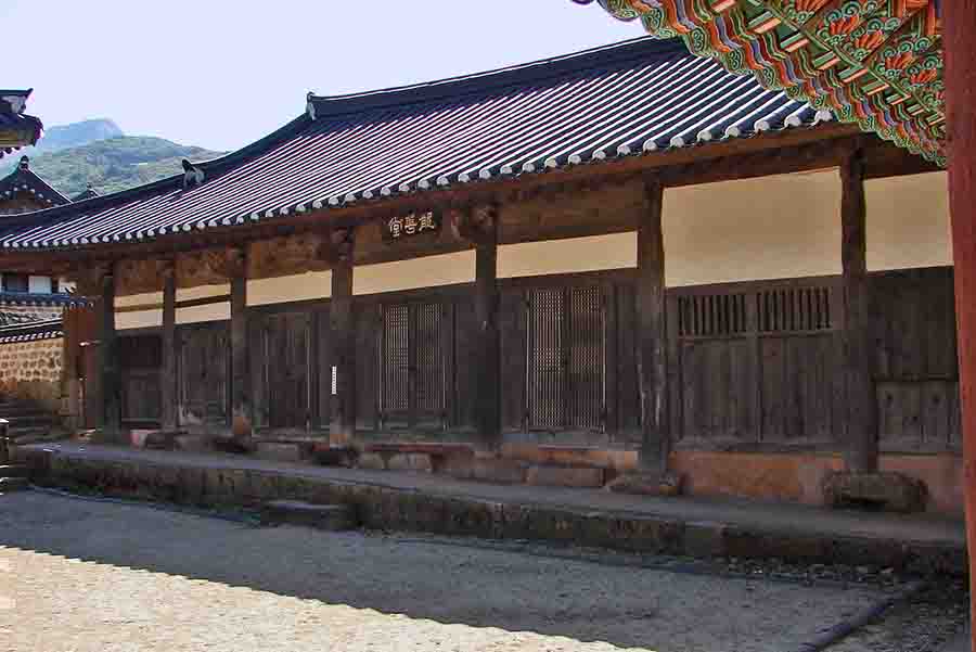 앞5칸·옆2칸 주심포 겹처마 맞배지붕; 침계루 동쪽에 위치한 건물로, 대웅보전 구역인 북원 경내의 요사채로 사용되고 있습니다. |