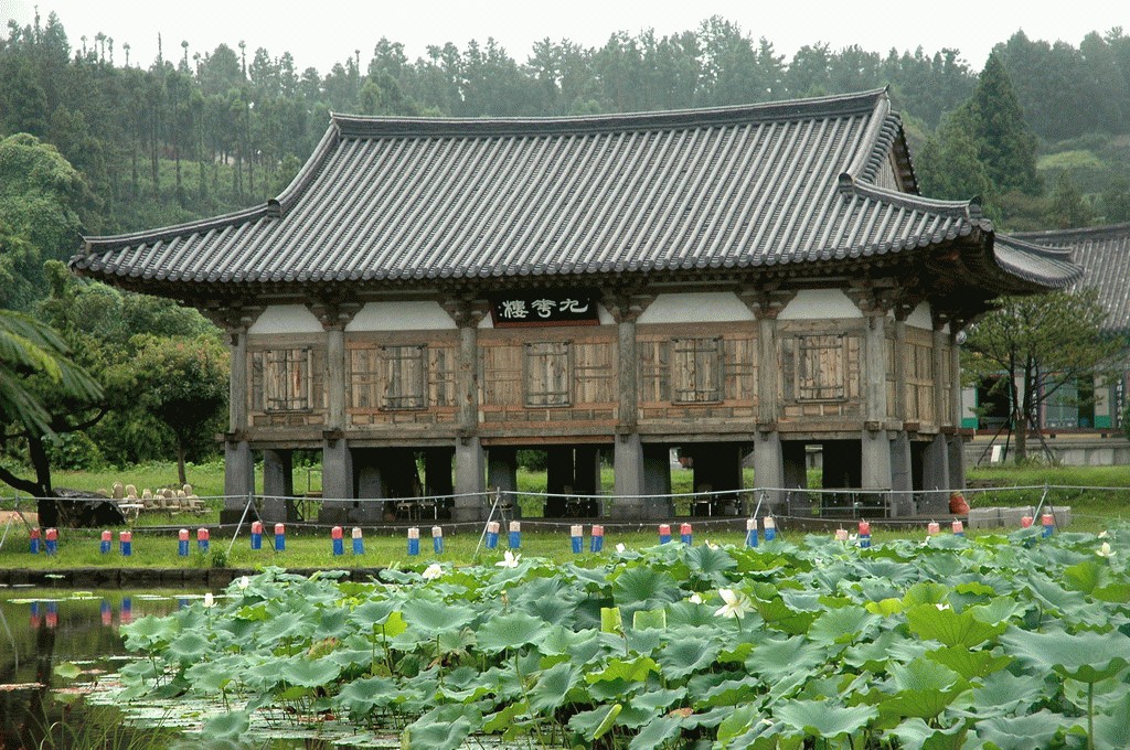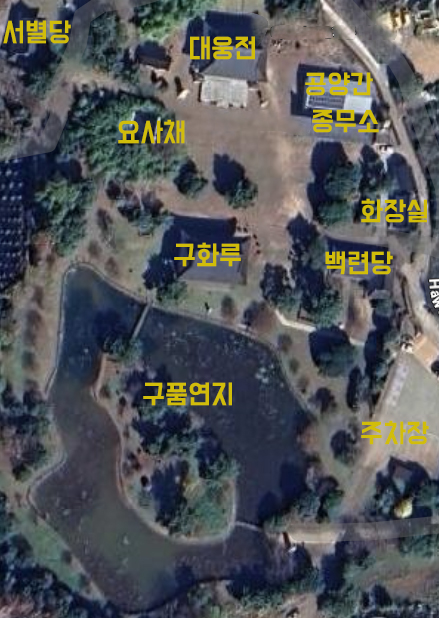 | 구화루 | 앞5칸·옆3칸 주심포 팔작지붕; 구품연지를 바라보는 2층 누각으로 부석사의 무량수전 양식으로 되어있습니다. |