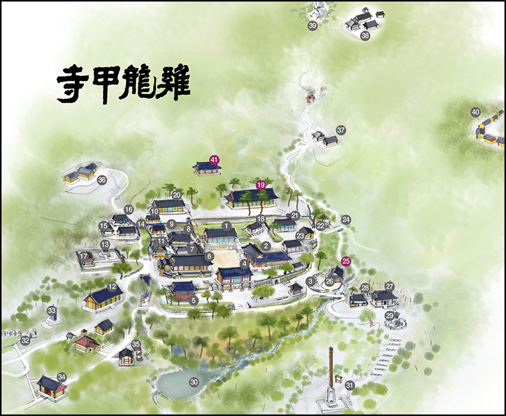| ㊶고경원함월당 | 대적선원 동쪽에 위치한 건물로, 템플스테이 프로그램에 사용됩니다. |
