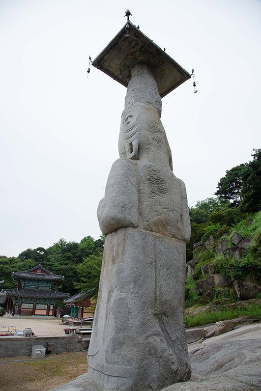 대광보전과 미륵전 사이에 위치한 종합예술품으로, 불경을 넣어두고 돌릴 수 있게 만든 회전식 책장이며, 손으로 돌리면 경전을 읽은 것과 같은 공덕을 쌓을 수 있다고 여겨지는 불교 공예품입니다. |