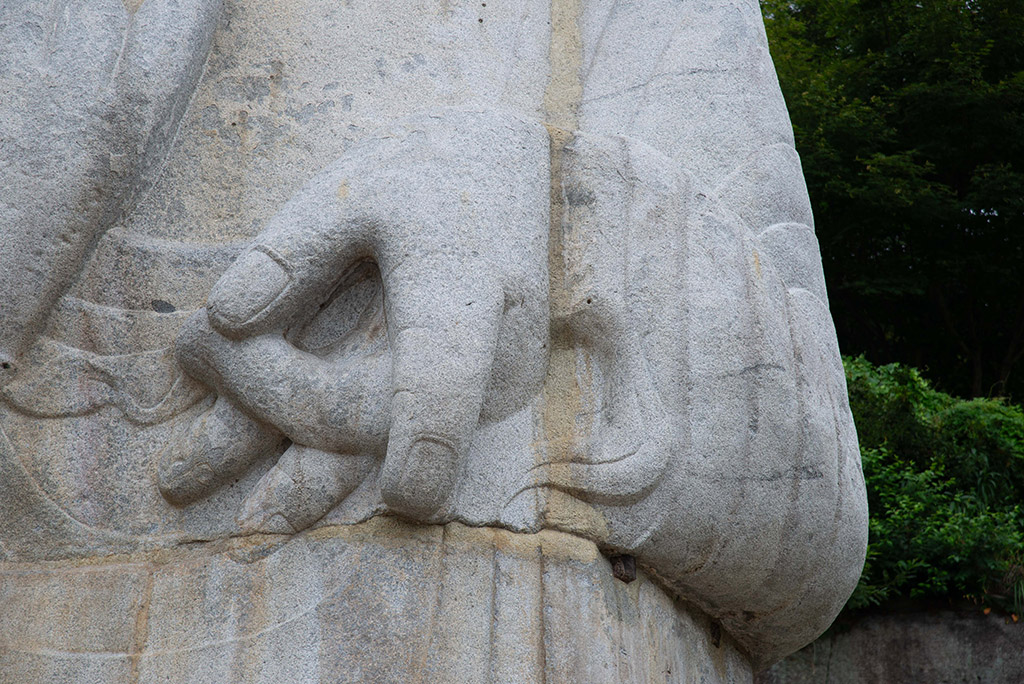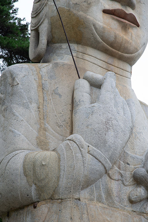 ◆논산 관촉사 석조 미륵보살 입상, 일명 은진미륵에 얽힌 설화입니다: 969년 기사년(己巳年)에 한 여인이 반야산(般若山)주2에서 고사리를 꺾다가 아이 우는 소리를 듣고 가 보았더니 아이는 없고 큰 바위가 땅속으로부터 솟아나고 있었다. 이 소식을 들은 조정에서는 바위로 불상을 조성할 것을 결정하고 혜명에게 그 일을 맡겼다. 혜명은 100여 명의 공장과 함께 970년(광종 21)에 공사를 시작하여 1006년(목종 9) 불상을 완성하였다. 그러나 불상이 너무 거대하여 세우지 못하고 걱정하던 어느날, 사제총에서 동자 두 명이 삼등분된 진흙 불상을 만들며 놀고 있는 것을 보게 되었다. 먼저 땅을 평평하게 하여 그 아랫부분을 세운 뒤 모래를 경사지게 쌓아 그 중간과 윗부분을 세운 다음 모래를 파내었다. 혜명은 돌아와서 그와 같은 방법으로 불상을 세웠다. 그런데 그 동자들은 문수보살과 보현보살이 화현(化現)하여 가르침을 준 것이라고 한다. 불상이 세워지자 하늘에서는 비를 내려 불상의 몸을 씻어 주었고 상서로운 기운이 21일 동안 서렸으며, 미간의 옥호(玉毫)에서 발한 빛이 사방을 비추었다. 중국의 승려 지안(智眼)이 그 빛을 좇아와 예배하였는데, “ 가주(嘉州)에 큰 불상이 있어 역시 동쪽을 향해 서 있는데 빛이 같은 때에 서로 응하였다.”라고 하여 관촉(灌燭)이라고 이름을 지었다고 한다.<한국민족문화대백과사전>