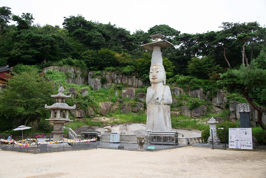 국보323호; 높이 18m의 국내 최대 규모의 고려 시대 석조미륵보살입상으로, 968년(고려 광종 19년)부터 1006년에 걸쳐 만들어졌으며, 원래 지역명인 은진면에서 유래하여 은진미륵이라 불립니다. 미륵(彌勒)은 미래에 나타나 중생을 구제할 부처님(미륵불)을 뜻해 '은혜로운 나루의 미륵불'이라는 의미를 담고 있으며, 신라의 우아함과 달리 파격적이고 토속적인 모습으로, 백제인들의 아픔을 위로하고자 고려시대에 만들어진 한국적 미학의 대표적인 불상입니다. |